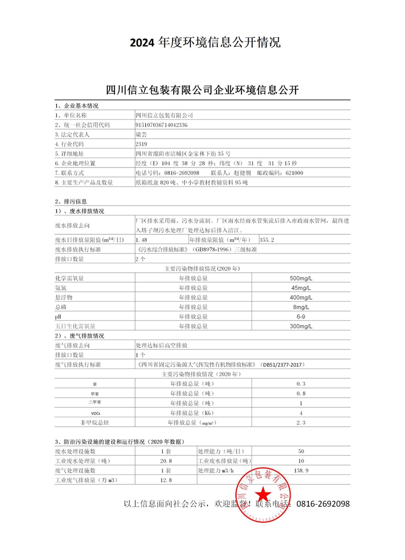 2024 年度环境信息公开情况
